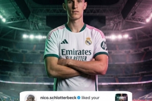 该博主还晒出了施洛特贝克身穿皇马球衣的P图照片,而施洛特贝克本人也点赞了该帖子。该博主表示这也证实了昨天关于他希望下赛季加盟皇家马德里的消息,他认为这个“点赞”就代表同意这笔转会🤝😉