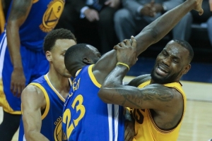 追梦在2016年G4中与詹姆斯发生冲突被判技术犯规,之后因为赛后追加恶犯,导致他季后赛恶意犯规积分累计达到禁赛标准,因此G5自动停赛一场。