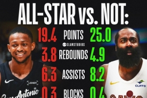 场均25分4.9板8.2助&均优于福克斯!美媒:哈登的全明星被抢了?