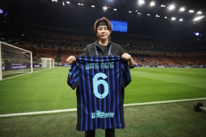 短道速滑奥运冠军王濛现场观看国米vs尤文,获赠国米6号球衣