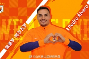 欢迎佩德罗·阿尔瓦罗加入山东泰山大家庭,期待他尽快适应球队、融入战术体系,与全体队友并肩作战,共创辉煌。