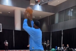詹姆斯全明星赛前热身:超远logo三分+双手扣篮