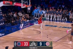 这谁想得到!布克突破布朗上篮得分 新星队领先星条队20+
