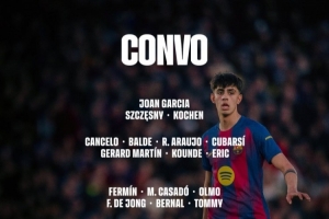巴萨客战赫罗纳名单:拉菲尼亚回归,莱万、亚马尔、德容在列