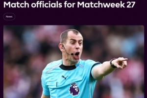 英超第27轮裁判:班克斯执法北伦敦德比 泰勒执法森林vs利物浦