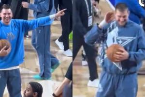 球迷在看台上大喊“假摔王” 东契奇笑着指约基奇 穆雷一旁笑嘻嘻