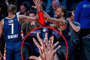 太夸张!在小卡的巨掌前 杜兰特的手就跟小朋友的一样♂️