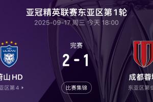 体育资讯09月17日讯 亚冠精英东亚区第1轮,蓉城1-2遭蔚山逆转,无缘亚冠首分。