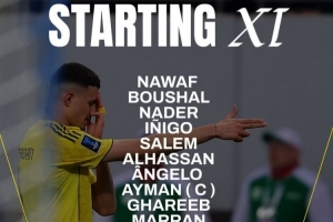 利雅得胜利首发:1-纳瓦夫·阿奇迪、12-纳瓦夫·布沙勒、4-纳德尔·沙里、26-伊尼戈·马丁内斯、83-萨勒姆·纳吉迪、19-阿里·哈桑、20-安吉洛、23-艾曼·叶海亚、29-加里卜、16-穆罕默德·马兰、9-哈姆丹