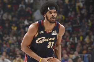 本场比赛,骑士中锋贾勒特·阿伦出战24分钟,8中5,三分1中0,罚球10中5砍下15分10篮板1助攻1抢断2盖帽,正负值高达+31!