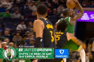 身手全能!布朗助攻普理查德三分命中 个人砍下17分11板10助三双