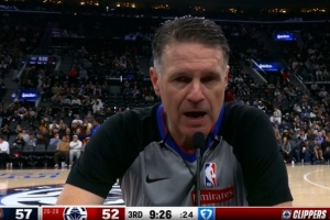 没升级!卡梅隆·约翰逊三分造科林斯犯规 裁判回放后吹普通犯规
