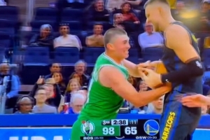 赛后采访,完成勇士首秀的波尔津吉斯接受了记者采访。谈到自己和普理查德抢球,他说道:“我不会轻易放弃那个球的。当时我们落后很多,所以我的心情本来就不太好。但其实那只是和老队友之间的一个有趣瞬间,只是开开玩笑而已。”