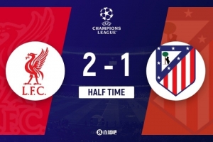 半场-利物浦2-1领先马竞 红军开局2分钟2球萨拉赫传射+1V3破门