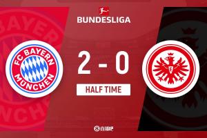 半场战罢,拜仁暂时以2-0领先法兰克福。