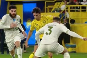 体育资讯2月22日讯 北京时间2月22日凌晨3时整,2025-26赛季沙特联第23轮在沙特国王大学体育场展开角逐,利雅得胜利主场迎战哈森姆。上半场C罗连场破门+生涯第963球,科曼传射建功,菲利克斯助攻,利雅得胜利主场暂时2-0领先哈森姆。