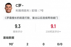 体育资讯2月22日讯 本轮沙特联,利雅得胜利4-0哈森姆。此役C罗首发打满全场,球员全场重点数据如下↓