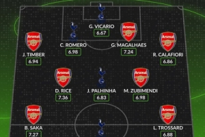 本赛季阿森纳+热刺评分最高阵:赖斯领衔阿森纳7人,罗梅罗在列