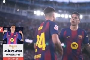 1次助攻+3次关键传球,坎塞洛当选巴萨3-0莱万特官方全场最佳