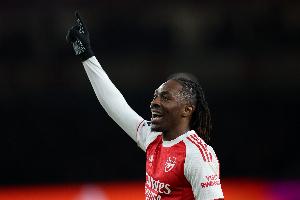 体育资讯2月23日讯 阿森纳在本轮英超客场4-1大胜热刺,埃泽梅开二度。
