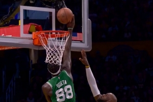 毫厘之间!詹姆斯上篮被科塔封盖 但疑似是干扰球