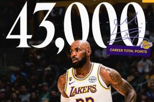 历史首人!詹姆斯NBA生涯常规赛总得分突破43000大关