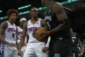 一夫当关!萨格斯突破暴起欲隔扣被斯图尔特迎面大帽封下