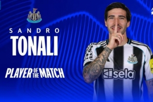 首开记录,欧冠官方:托纳利当选纽卡3-2卡拉巴赫全场最佳球员