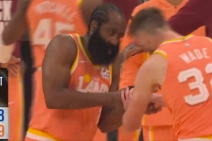 开攻!迪恩·韦德分球 哈登三分轰进打停尼克斯