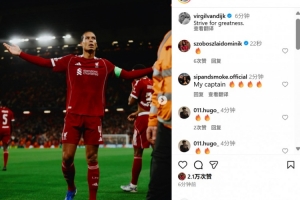 范迪克也在个人社媒晒出庆祝进球照片,配文写道:“努力追求伟大!”