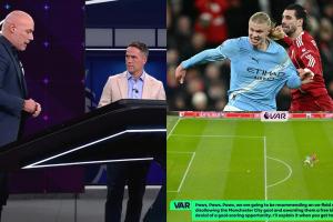 “所以,我们必须回到最初的犯规点,也就是索博斯洛伊拉拽哈兰德的那次犯规。那是在禁区外阻止了一次明显的得分机会,所以裁判判罚了任意球,索博斯洛伊被红牌罚下。最终,VAR的判罚显然是正确的。”