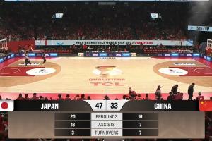 体育资讯2月26日讯 男篮亚洲杯预选赛,中国男篮半场33-47落后于日本男篮。