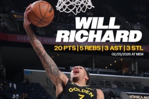 理查德单场至少21分5板6助3断 2012年克莱后勇士首位新秀!