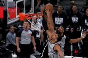 舍身封堵!小波特杀进内线试图扣篮 文班铁掌支在篮筐上大帽拒绝