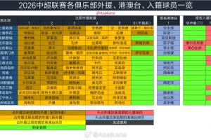 中超外援、港澳台、入籍球员:16队全用满5外援,4队注册6外援