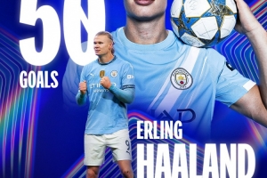 新的里程碑到来!欧冠官方更新海报祝贺哈兰德50球