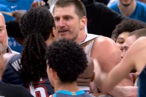 坏!多特撞翻约基奇二级恶犯被驱逐 约基奇怒目圆瞪与杰林冲突!