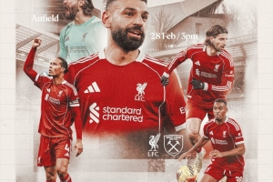 主场迎战铁锤帮!利物浦社媒晒海报:萨拉赫C位,范戴克等4将在列