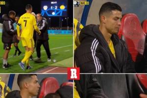 希望问题不大!C罗在比赛中因身体不适被换下,在替补席接受冰敷