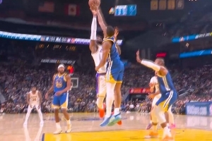 当头一棒!梅尔顿积极跟防 高高跃起送詹姆斯迎面大帽