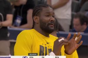 哥们你是专业的啊!热身时艾顿被篮球吓的不敢接球