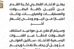 卡塔尔足协官方:从即日起推迟所有赛事和比赛,直至另行通知