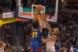 涨涨士气!贾马尔·穆雷突破腾空起飞 双手暴力隔扣戈贝尔!