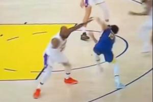 詹姆斯一次快攻两次推翻勇士球员 女裁判就在一旁未响哨