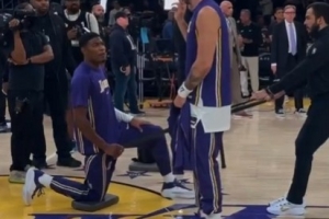 卢卡有魔法东契奇训练连进两个中场背投 八村在一旁跪着看