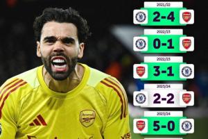自2022年以来,5年时间,切尔西面对阿森纳1胜难求:22年2负、23年1平1负、24年1平1负、25年1平1负、26年3负。