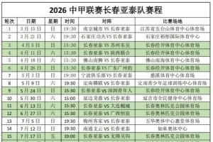 2026中甲赛程出炉!长春亚泰3月15日首战南京