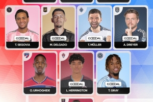 中场:特拉斯科·塞戈维亚(迈阿密国际)、马克·德尔加多(洛杉矶FC)、穆勒(温哥华白浪)、安德斯·德雷尔(圣地亚哥FC)