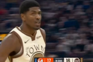 运气不错!内特·威廉姆斯侧翼出手 空位三分颠进篮筐