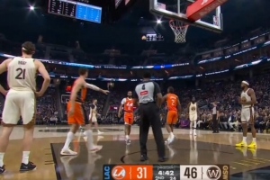 交出球权!伊森转身肘到八村塁 被吹进攻犯规